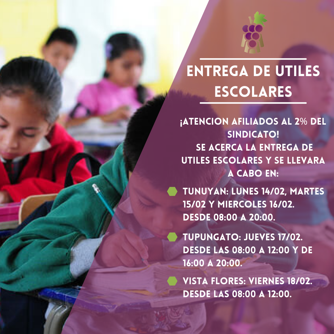 Se acerca el ciclo lectivo 2022 y SOEVA Tunuyán – Tupungato se esta preparando para la entrega de útiles escolares. La entrega será para alumnos desde salita de 4 años hasta 2do año de secundaria. Requisitos:Presentar último bono de sueldo.CODEM de Anses.Certificado de alumno regular.No olvidar que para adquirir su kit, debe estar afiliado al […]